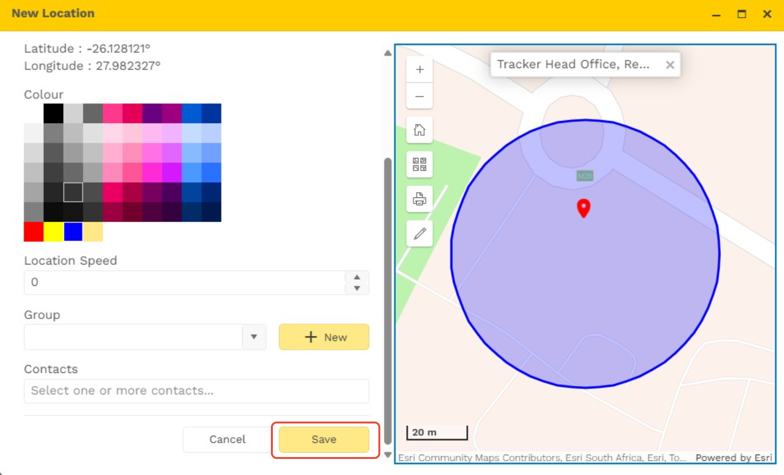 - The Location Type (Go places, No Go Places, My Places, Sites)