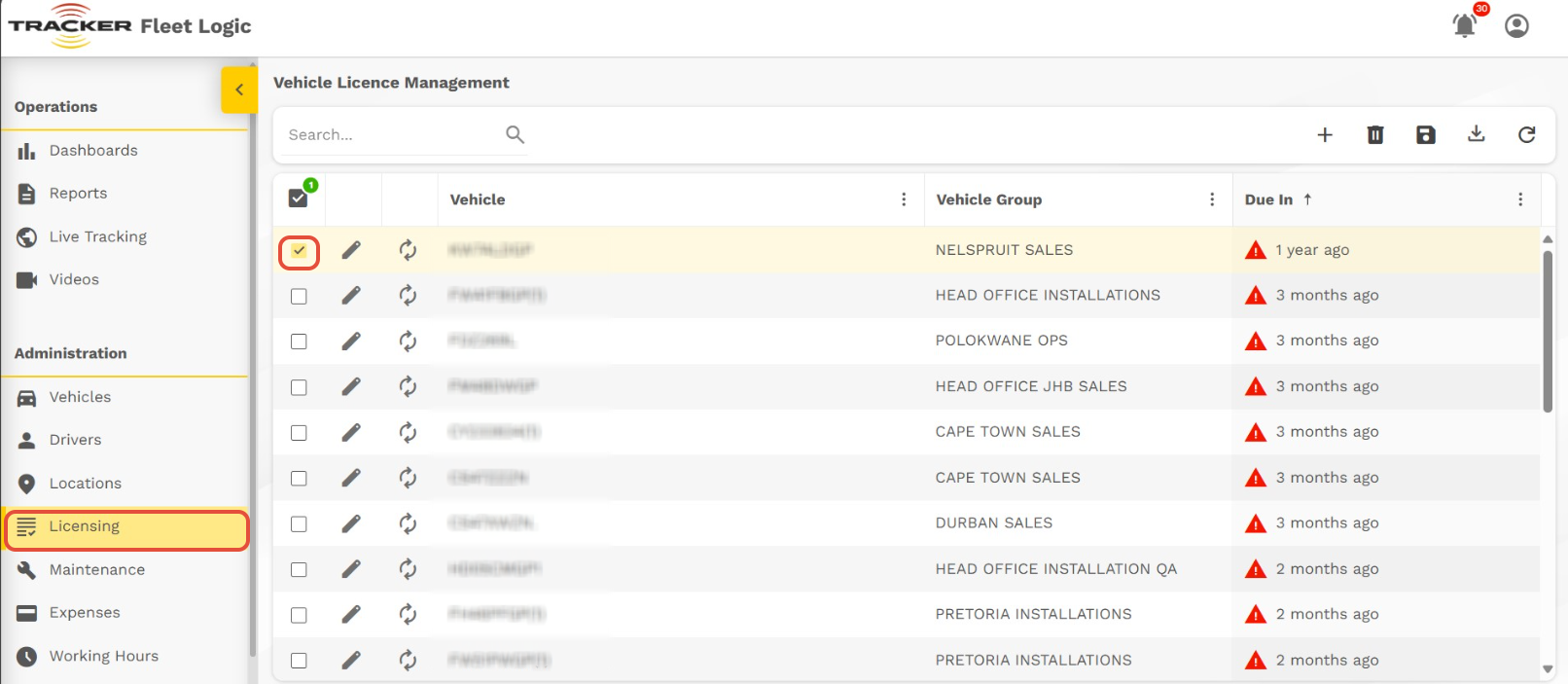 As a user you can edit the vehicles license details