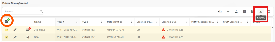 - Select the vehicles you want exported to an excel spreadsheet