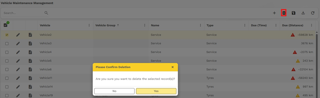 A pop up will appear to confirm the maintenance reminder has been deleted