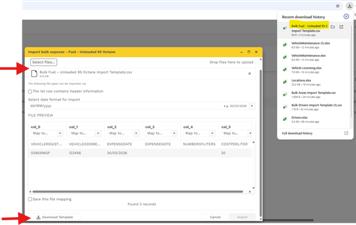 • The below pop-up will open where you can download template to complete then Import.